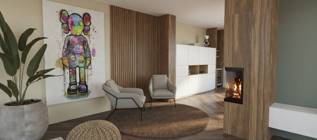 Wij creëren sfeervolle en realistische interieurontwerpen, zowel voor zakelijke projecten als particuliere woningen. Van concept tot visualisatie, wij brengen ruimtes tot leven met doordachte ontwerpen en hoogwaardige visuals.